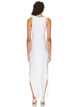 Diagonal Collar One-Shoulder High Slit Ruched Design Long Dress (HL9025)